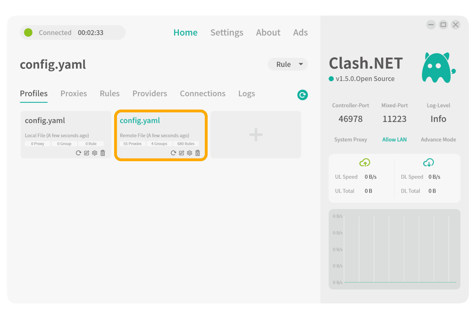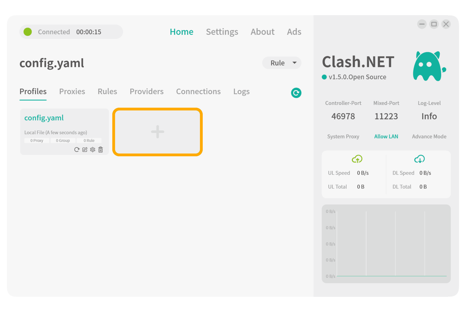 打开 Clash.NET,点击 Profiles(配置) 页面下的加号。