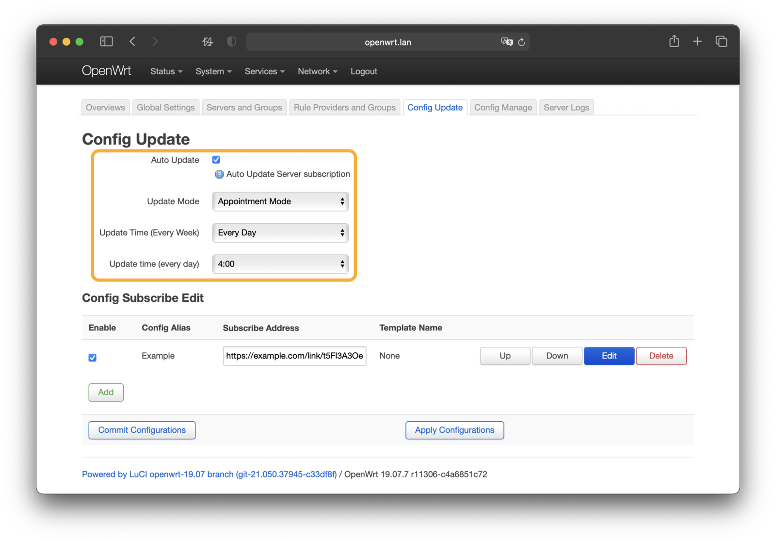 设置更新模式为 “Appointment Mode (预约)” ,更新时间建议选择每天 4:00 。