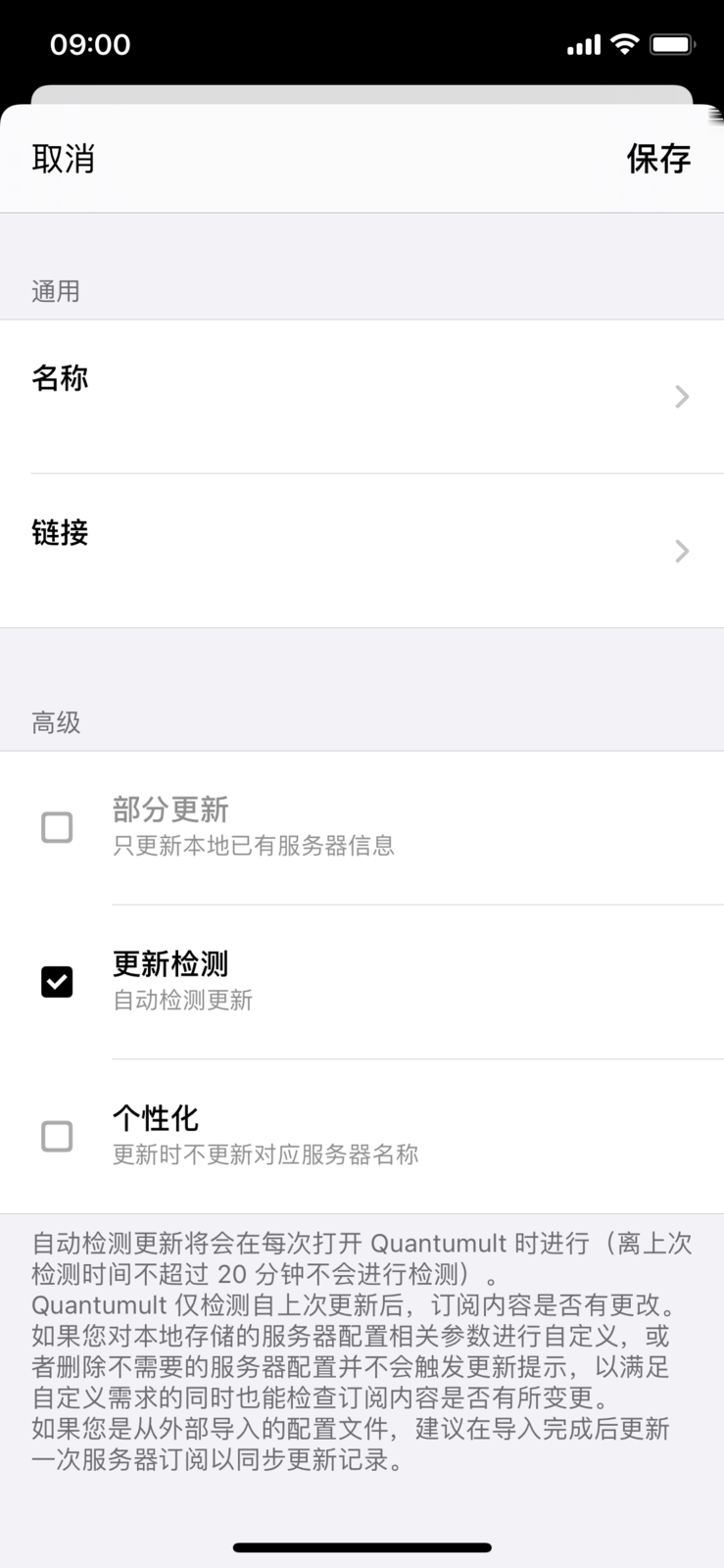 点击右上角 “保存”,Quantumult 将开始订阅节点。