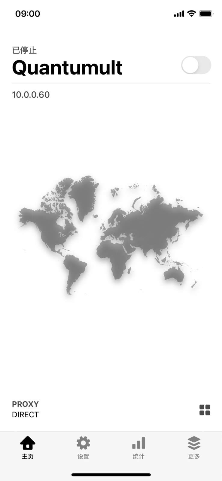 Quantumult 默认以分流模式运行,可以点击右下角的模式选择按钮选择切换其他模式。