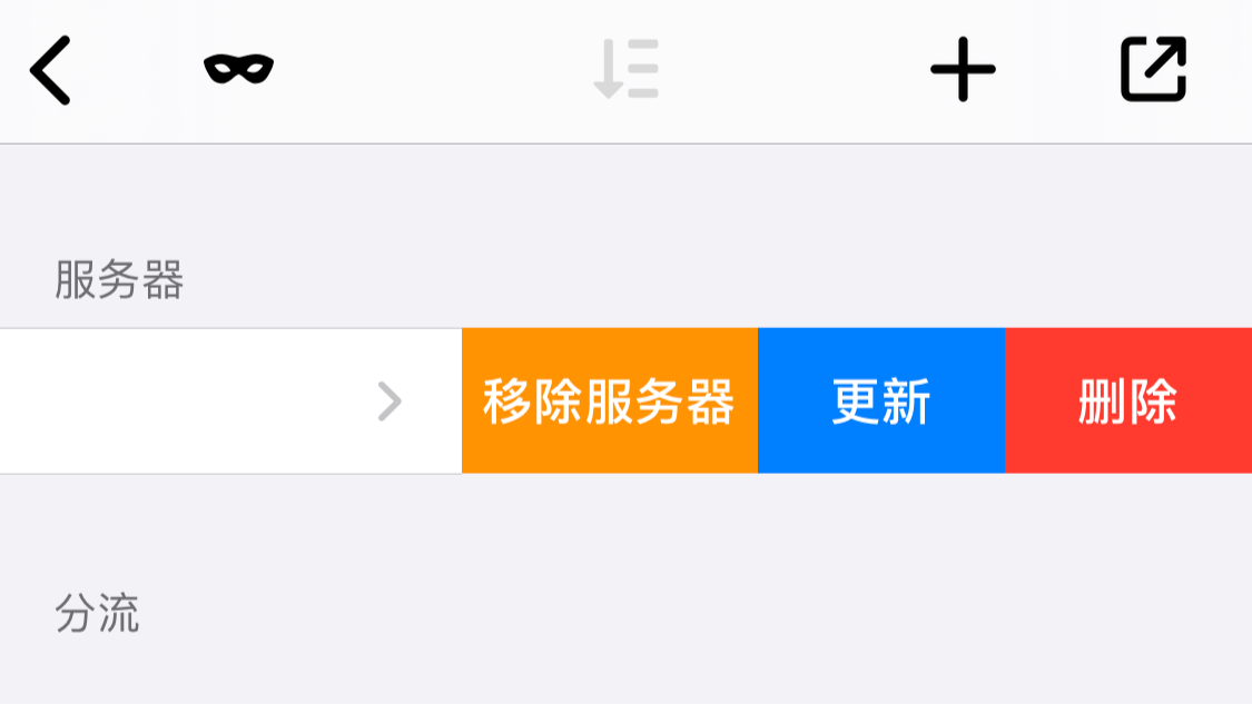 点击右上角+,选择 “服务器”,填入 订阅名称 和 订阅链接。