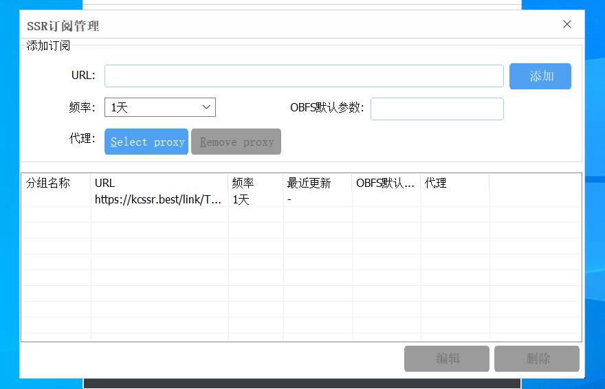 在 URL 一栏中填入 SSR 订阅链接,点击 “添加” 后关闭窗口,SSTap 将自动更新订阅。