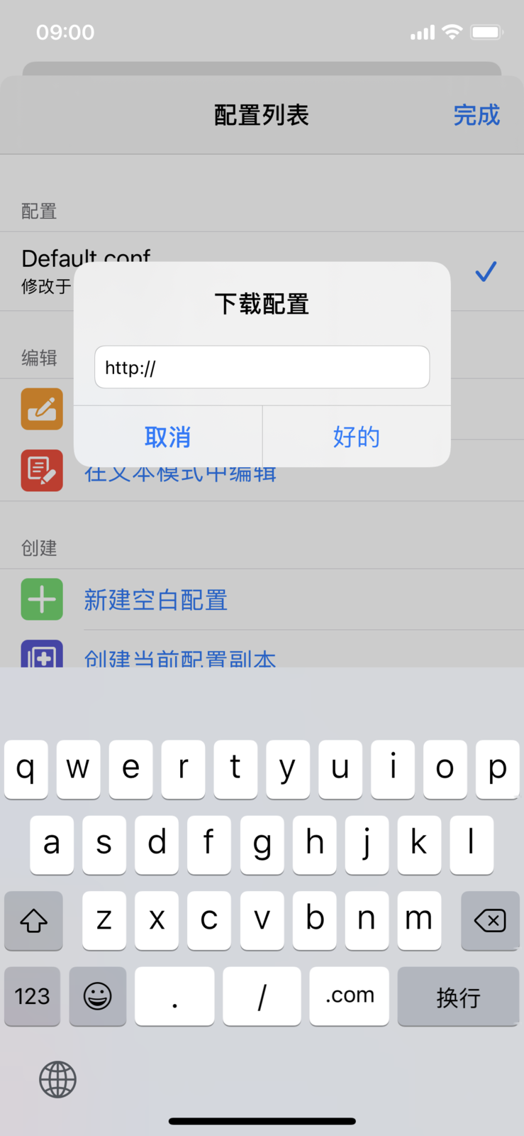 在弹出的输入框中将已有的 http:// 删除,填入 Surge 托管订阅点击 “好的”,Surge 将载入配置。
